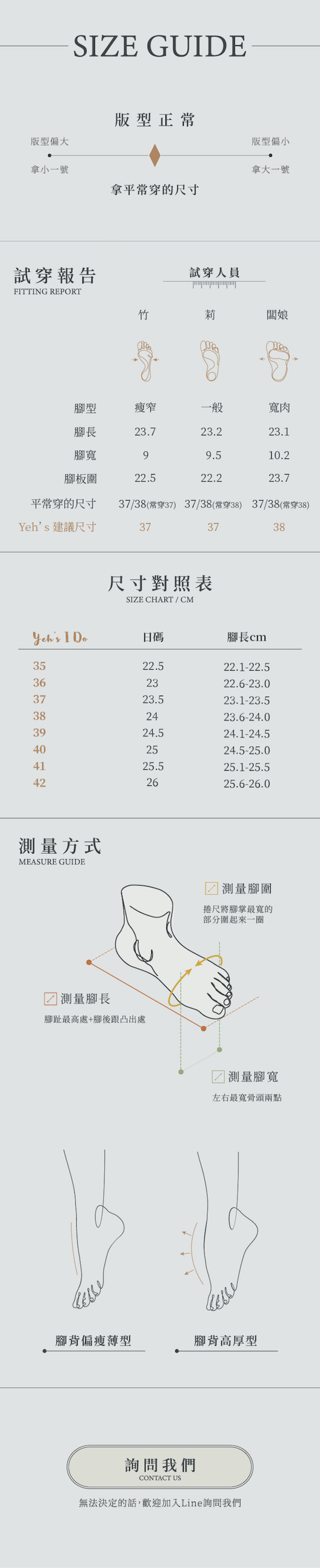 瘦腳板:平常穿23.5(37)/24(38)-居多,建議拿37,穿厚襪建議拿38。