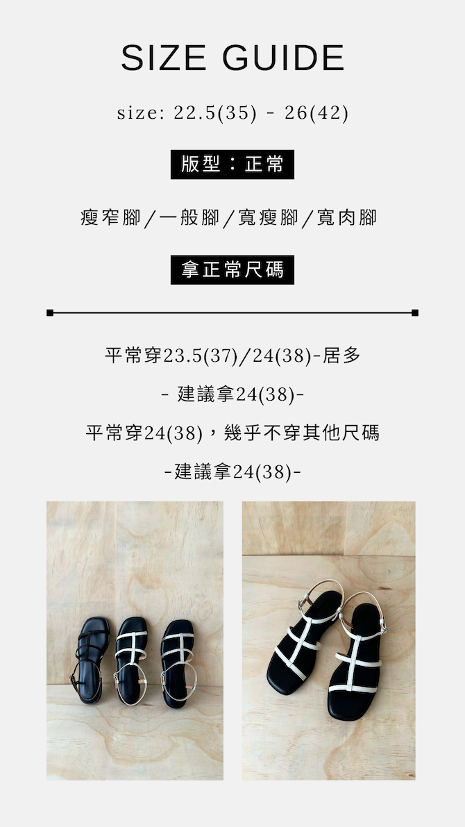 - 平常穿23.5(37)/24(38)-居多,建議拿24(38)